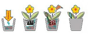 Наполните новый большой и не пропускающий воду горшок на 1/3 гранулятом Seramis. Перенесите в него растение с остатками земли и полностью засыпьте горшок гранулятом. Вставьте в гранулят индикатор полива до самой нижней точки указательной части индикатора. Полейте растение, оптимальное количество около 1/3 объёма горшка. Старайтесь не переливать растения, это может привести к нежелательным последствиям.