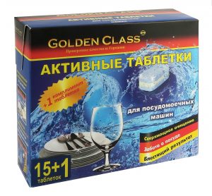 Таблетки GOLDEN CLASS предназначены для мытья посуды в посудомоечной машине любого типа и производителя.