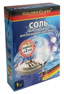 Соль GOLDEN CLASS — это 100% чистая поваренная соль. Уменьшает расход моющих средств. Продлевает срок службы посудомоечной машины.